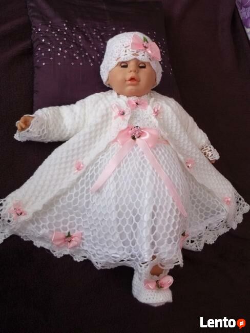 OFERUJE PAŃSTWU ŚLICZNY I NIEPOWTARZALNY KOMPLET DO CHRZTU WYKONANY Z MILUTKIEGO , DELIKATNEGO 100 % AKRYL , , UBRANKO ŚLICZNE , EFEKTOWNE , WYKONANE I ZAPROJEKTOWANE Z OGROMNA DOKŁADNOŚCIĄ I PRECYZJA Z MYŚLĄ O PAŃSTWA MILUSIŃSKICH , TAK ABY PAŃSTWA POCIECHA W TYM NAJWAŻNIEJSZYM DNIU JAKIM JEST CHRZEST ŚW WYGLĄDAŁA I CZUŁA SIĘ NADZWYCZAJ WYGODNIE I KOMFORTOWOW SKŁAD KOMPLETU WCHODZI